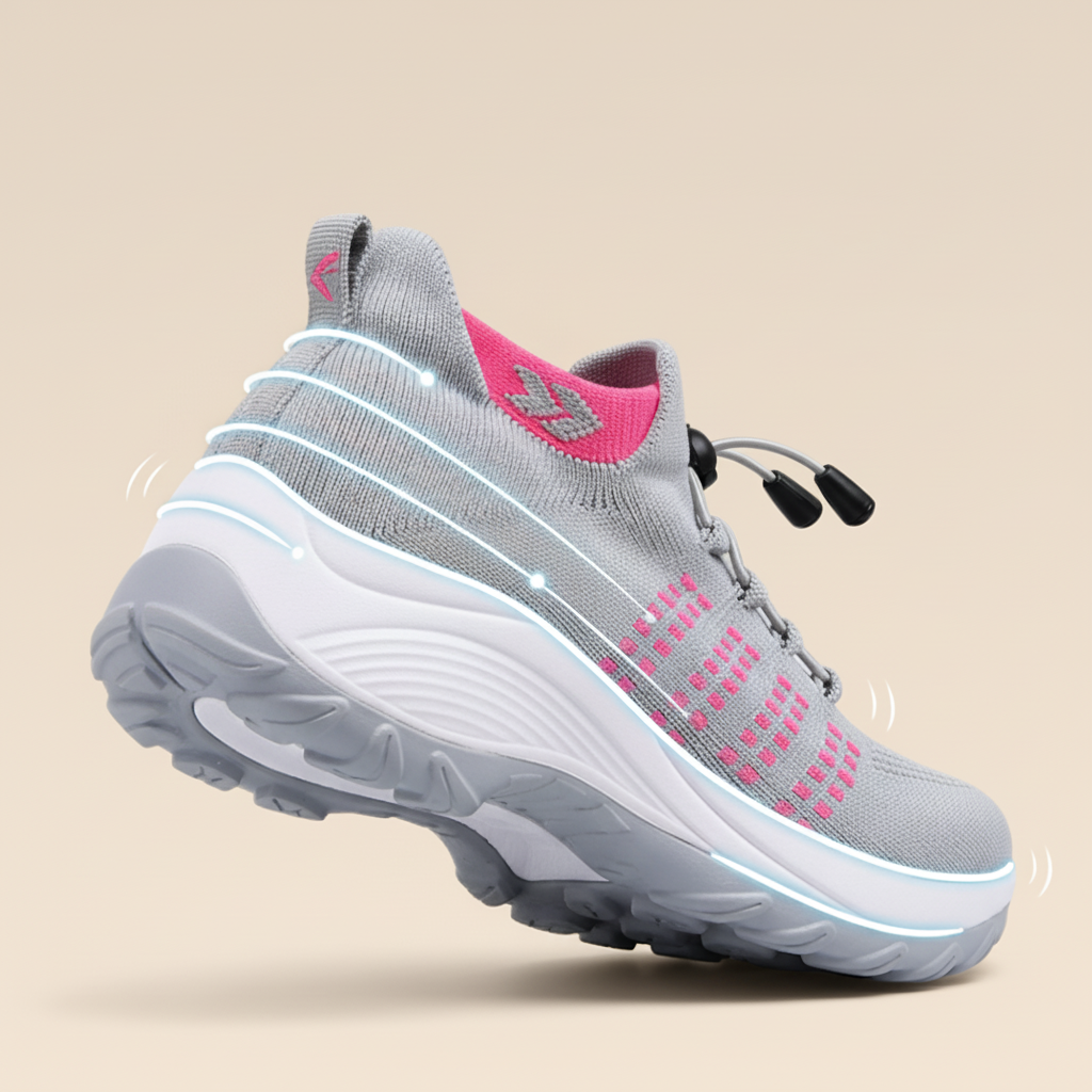 Su sistema de soporte ortopédico distribuye el peso de forma equilibrada, corrige la postura y reduce el impacto en cada paso.